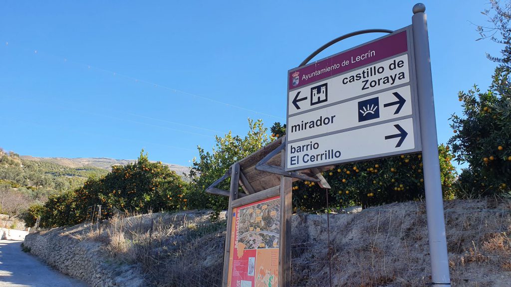Cuando íbamos llegando al Valle me venían recuerdos lejanos de cuando era un niño, y de las pocas veces que fui a Granada desde mi pueblo Polopos, -allá en La Alpujarra que da al mar- y pasábamos en la Alsina Graells (autobús de línea que iba de Berja a Granada); desde la altura de mi asiento, divisaba este valle por primera vez y, me parecía la «Tierra Prometida» contemplada por Moisés».: Veía un valle de naranjos y limoneros, con las tímidas naranjas asomando entre el verde fuerte de las hojas y me parecía que aquí, «siempre era Primavera»… Por aquí pasó Boabdil (último rey moro de Granada) con su séquito y su pena, después de haber entregado la Alhambra a los Reyes Católicos. Estuvo alojado en el castillo de Soraya, en una parada del camino a su destierro en Laujar de Andarax primero, y por último Argel… -como Adán, fue expulsado del Paraíso, desnudo y con su pena, perseguido por los cristianos. Miró el Paraíso del Valle de Lecrín, desde la altura del castillo y las lágrimas rodaron por las almenas, bajando a los naranjos y limoneros. Lloró «como una mujer» – según su madre- «lo que no había defendido como un hombre».