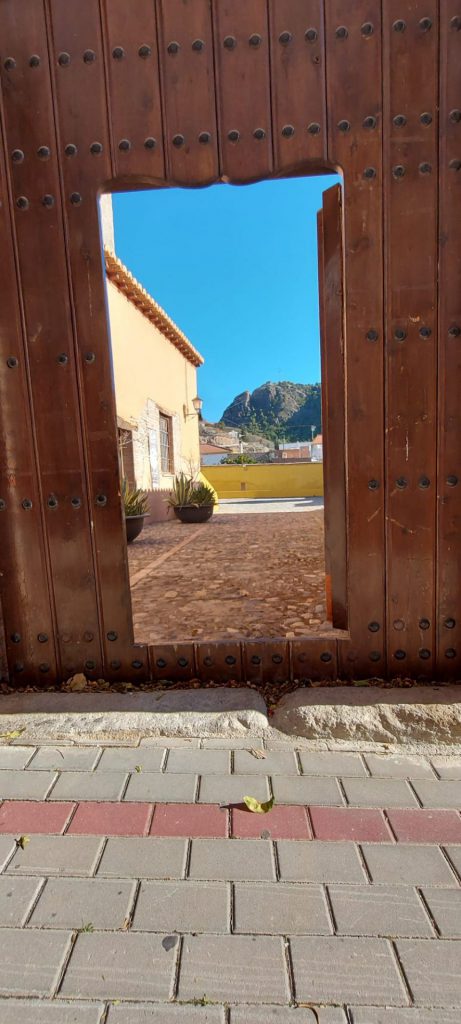 Una vez dentro del cementerio Isacio nos explica el motivo por el que está a más de un metro de altura sobre la calle, cuando se hizo había una «rauda» (cementerio musulmán) y el cementerio cristiano se hizo encima, después de la construcción de la iglesia que está al lado – que también se construyó sobre una mezquita-. Enfrente de la puerta hay como un cobertizo techado con unas maderas sobre la pared, donde descansa una caja de madera con la tapa soslayada sobre el borde. Isacio nos cuenta que es el ATAUD DE LAS ÁNIMAS. La función de este ataúd era la de transportar los restos mortales de los más pobres, que no tenían para pagarse un entierro. Ataúd de apariencia muy pobre, como los caudales en los bolsillos del que llevaba. El ataúd se llevaba a la casa del difunto para que este fuera trasladado a la iglesia y al cementerio. Cuando se llegaba a la fosa se sacaba el cadáver de la caja y se enterraba. Una vez terminado el entierro el ataúd volvía a su lugar en el altillo, esperando al próximo pobre…