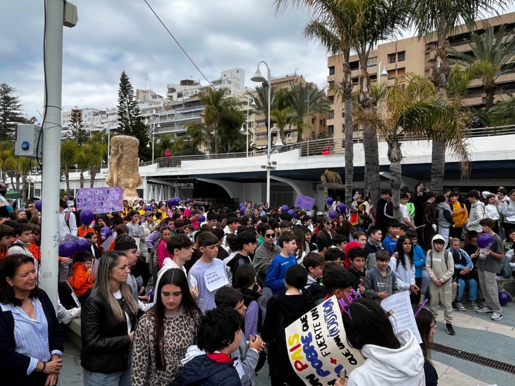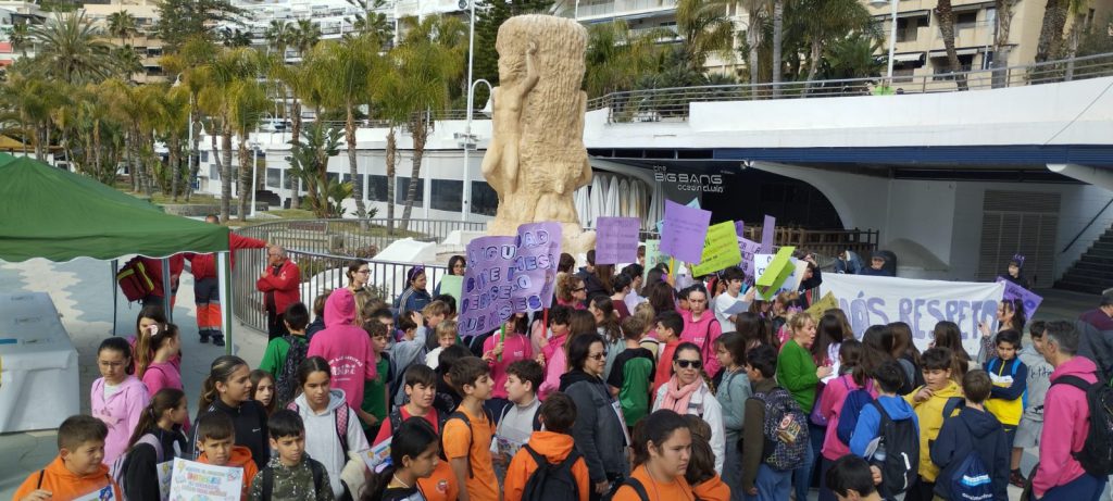 La actividad, celebrada bajo el lema “Da el paso, la igualdad nos hace avanzar”, ha reunido a estudiantes y representantes de los equipos docentes de los CEIP Río Verde, San Miguel, Santa Cruz, Torrecuevas, La Noria y Las Gaviotas, así como de los institutos Villanueva del Mar, Al-Ándalus, Antigua Sexi y Puerta del Mar, que han tomado las calles para reivindicar una sociedad más justa e igualitaria. También se ha contado con la presencia e inestimable colaboración de Policía Local, Protección Civil, Cruz Roja, Asociación de Mujeres en Solidaridad con Madres Solas ‘Marisa Sendón’, y de las AMPAs Fortaleza, Santa Cruz y Antigua Sexi.