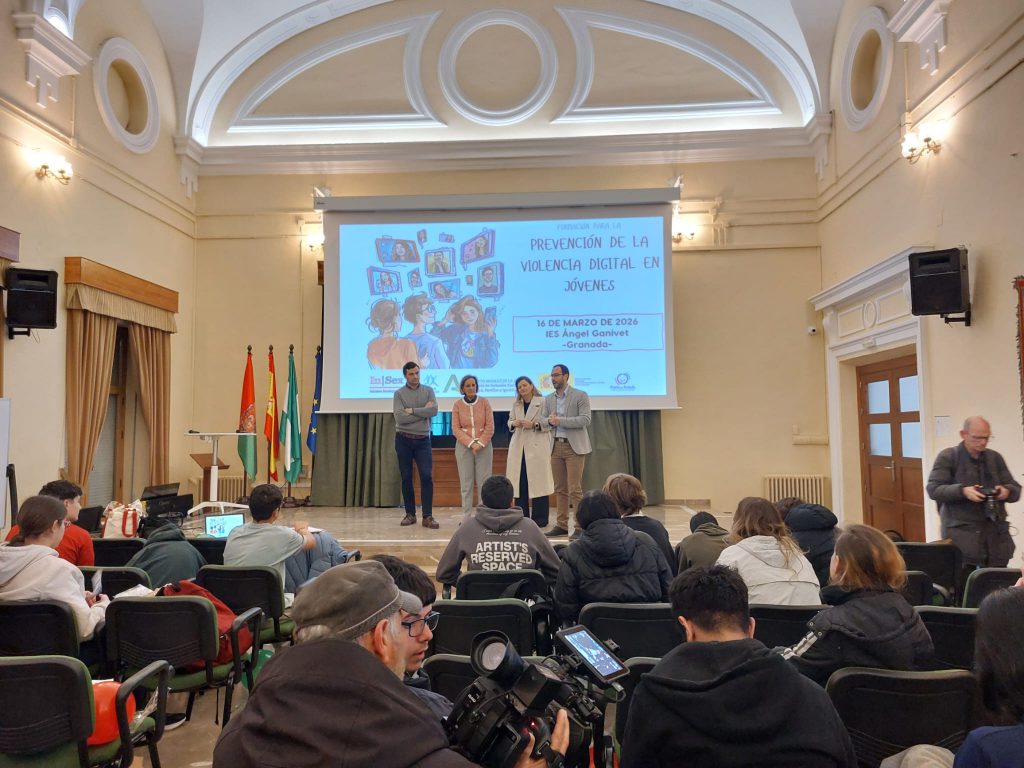 Un centenar de alumnos del Instituto Ángel Ganivet de Granada han participado en un taller de ‘Prevención de la Violencia Digital en Jóvenes’ promovido por la Consejería de Inclusión Social, Juventud, Familias e Igualdad, a través del Instituto Andaluz de la Juventud (IAJ), en todas las provincias andaluzas, destinado a alumnado de 4º de ESO.