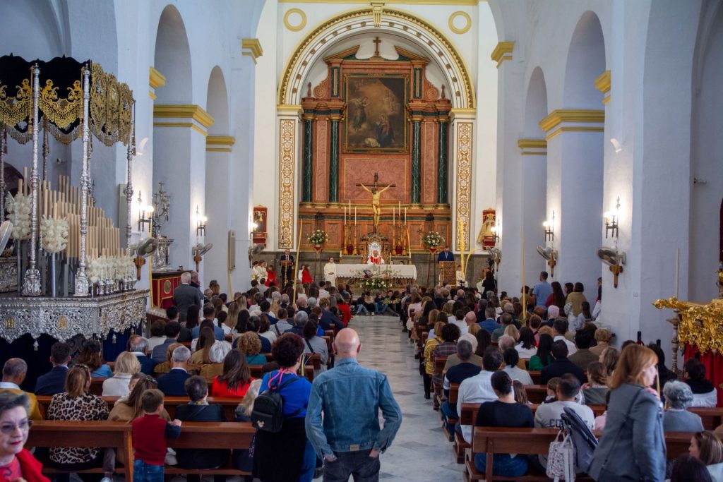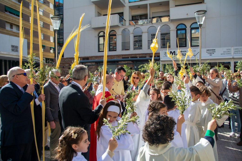 En Motril, desde que se anuncia el día, el domingo de Ramos es jornada de fiesta y alegría. Comienza el mismo a las 11:00 de la mañana con el acto de bendición de palmas en la plaza del Tranvía, sede del colegio de las RR.MM. Dominicas que fue quien acogía en su capilla a la primitiva imagen de Jesús a lomos de la borriquita. Allí estaba su consiliario D. José Ignacio Martínez Garzón, quien en sus palabras expresó el triunfo Cristo sobre la muerte que llega tras su crucifixión. Desde este lugar, portando las palmas, la comitiva se ha dirigido a la iglesia Mayor, donde a las 11:30 h ha tenido lugar la misa de palmas y la jura de cargos de la nueva junta de gobierno que desde este día preside quien fuera su tradicional capataz del paso de misterio, Francisco Pérez Lorenzo. El templo mayor se ha visto completamente abarrotado de fieles, donde han tenido igualmente presencia las juntas de gobierno de las respectivas cofradías penitenciales de la ciudad.