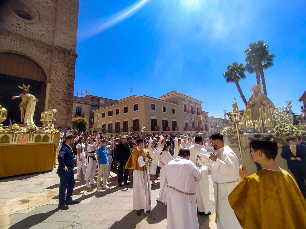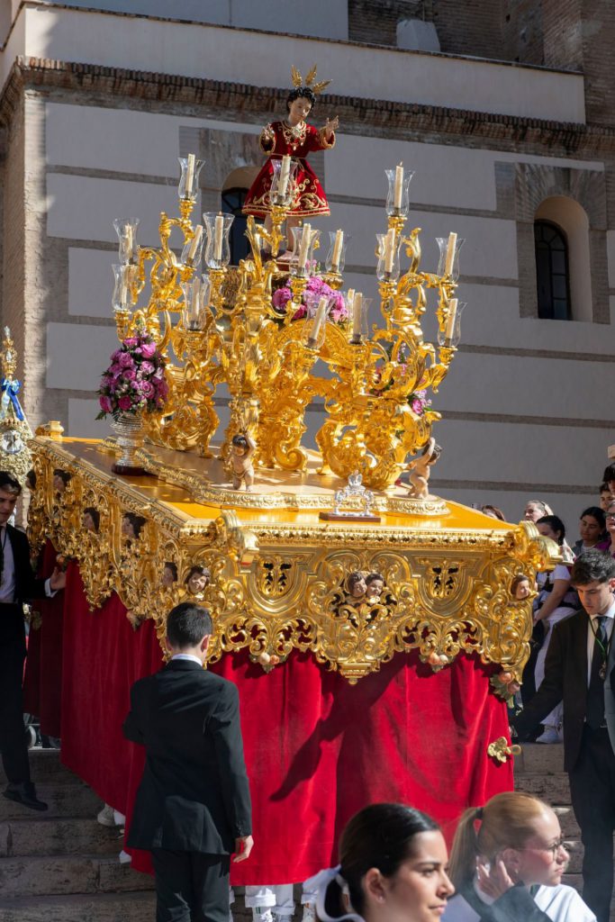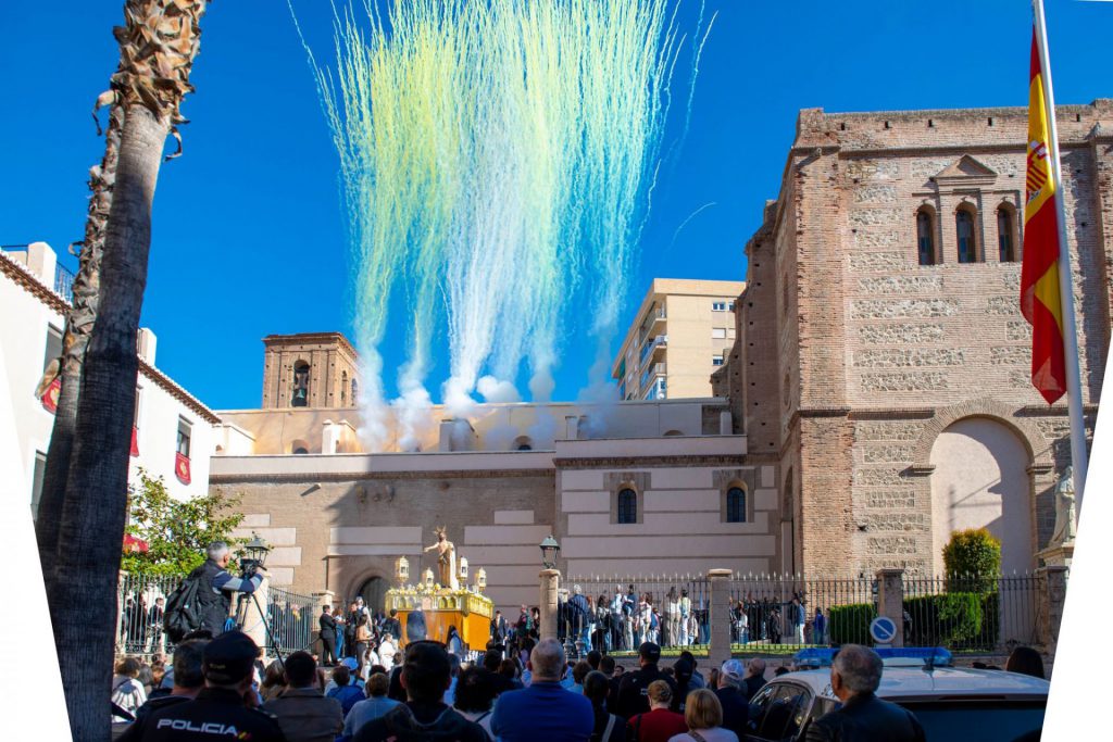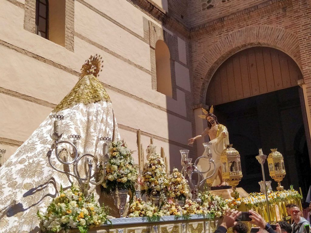 La procesión ha realizado un extenso recorrido procesional, verificándose su entrada en el templo minutos antes de las 13:30 h, siendo de destacar el momento en el que ambas imágenes han sido enfrentadas en el atrio para representar la escena de un encuentro sagrado en el que el Resucitado se despide de su Madre de la Paz suscitando hondos sentimientos entre el numeroso público que ha acudido a la clausura.