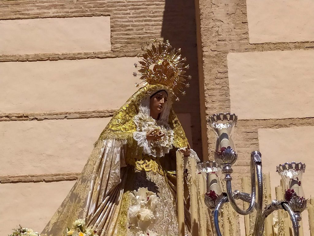 La sección de la Virgen de la Paz se ha dispuesto a continuación con la cruz parroquial y dos ciriales, a los que ha seguido la representación de la sección motrileña de la Adoración Nocturna, la hermandad de la Virgen del Carmen Varadero y la hermandad de Jesús Nazareno y Nuestra Señora del Carmen de Torrenueva que asiste con su “bacalá” representativa, además de la representación de la Divina Pastora y la hermandad de Nuestra Señora de las Angustias. Seguidamente, el cuerpo de madrinas ataviadas con el traje de color marfil que responde a la conmemoración alegre del día por la Resurrección de Cristo y que portan velas en las manos. Sigue a ellas el párroco y consiliario, D. José Ignacio Martínez Garzón, dispuesto en el centro de las filas. Finalmente, dos ciriales dan paso al cuerpo de incensarios y el paso de la Virgen de la Paz, que se alza majestuosa sobre la canastilla. La imagen es obra del mismo autor que la del Resucitado, Antonio Dubé de Luque, y ha sido realizada en el año de 2004. Radiante y bella en su aditamento, ha sido ataviada por su vestidor Juan Manuel Calderón Florido, estrenando para la ocasión saya y encaje con una cruz pectoral y su tradicional manto de salida en el que se dejan ver prendidas las decenas de lazos con los nombres de los niños que han sido presentados a Ella en la fiesta de la Candelaria. El paso, igualmente novedoso, combina la candelería y candelabros en sus esquinas para mostrar el momento de alegría, de paz y de gloria por la Resurrección del Señor. El paso ha sido dirigido en labores de capataza por la joven Marta Salvador. Cierra la procesión la Banda de Música de Molvízar, que ha alegrado el paso de los costaleros con conocidas marchas marianas de corte alegre como corresponde al día.