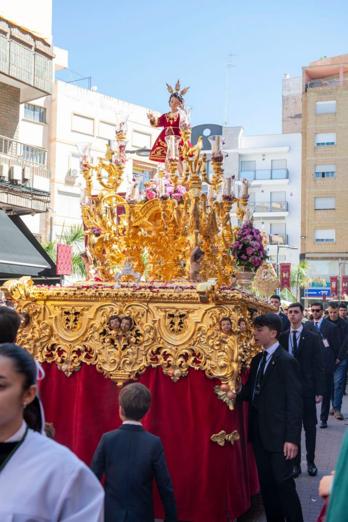 La imagen ha sido ataviada por su tradicional vestidor, Antonio Ruiz Blanco, con túnica de terciopelo de color granate con bordados de realce en oro y cíngulo a su cintura, luciendo en su cabeza  potencias bañadas en oro que hacen resaltar su omnipotencia en todo el mundo terrenal. Por lo que respecta al paso, ha sido tallado y dorado bajo un  diseño de estilo neobarroco del tallista sevillano Manuel Guzmán Bejarano, siendo portando por una cuadrilla de niños en modalidad de trabajadera sevillana. El paso ha estado dirigido en labores de capataz por Juan Miguel Benavides, asistido por una extensa cuadrilla de auxiliares. Finalmente, ha cerrado el cortejo la Agrupación Musical Nuestra Señora de la Encarnación de Almuñécar, que ha sabido brindar calidad interpretativa en la variedad de marchas de corte alegre que ha contado en su repertorio.