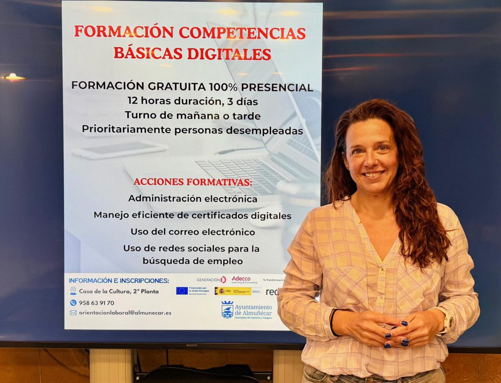 a concejala de Fomento y Empleo del Ayuntamiento de Almuñécar, Beatriz González, ha informado de la apertura del plazo de inscripción para un curso gratuito de competencias digitales básicas, que estará dirigido, prioritariamente, a personas desempleadas y orientado a mejorar sus oportunidades de acceso al mercado laboral.