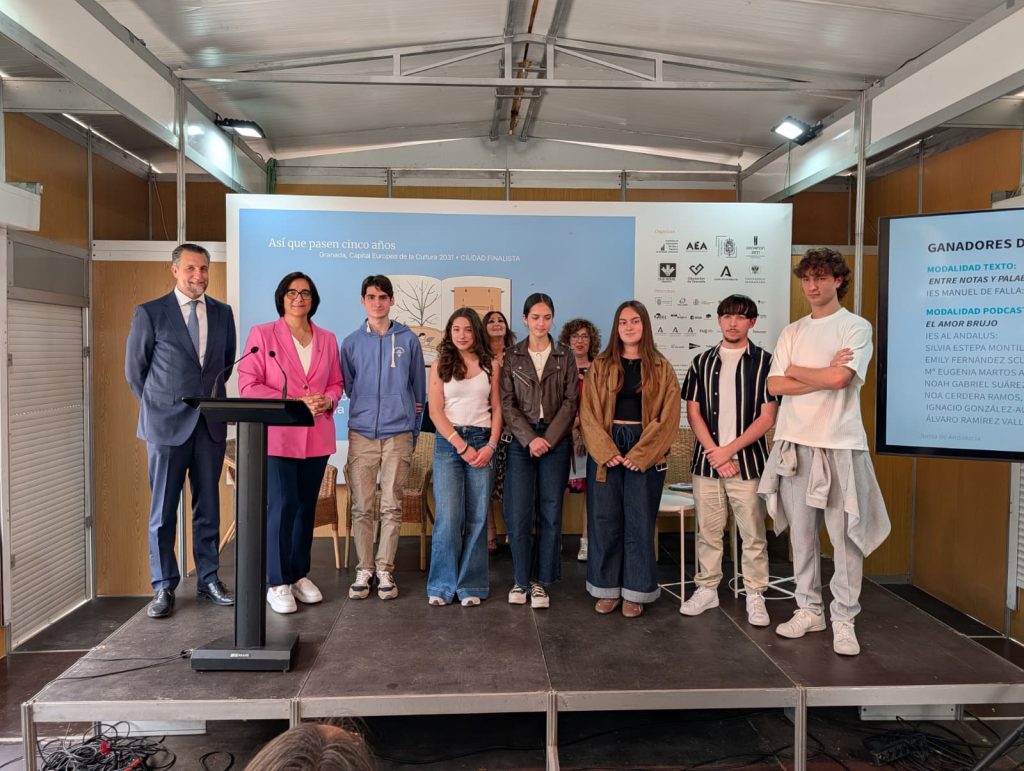 La Feria del Libro de Granada ha sido el escenario para la entrega de premios del concurso “La literatura convertida en música: el universo creativo de Manuel de Falla”, un certamen que ha contado con la participación de medio centenar de alumnos y alumnas de 12 centros educativos de Granada y su provincia, que han concurrido en dos fases: una primera de creación literaria —en formato escrito o podcast— y una segunda de producción artística basada en la ilustración de las obras ganadoras.