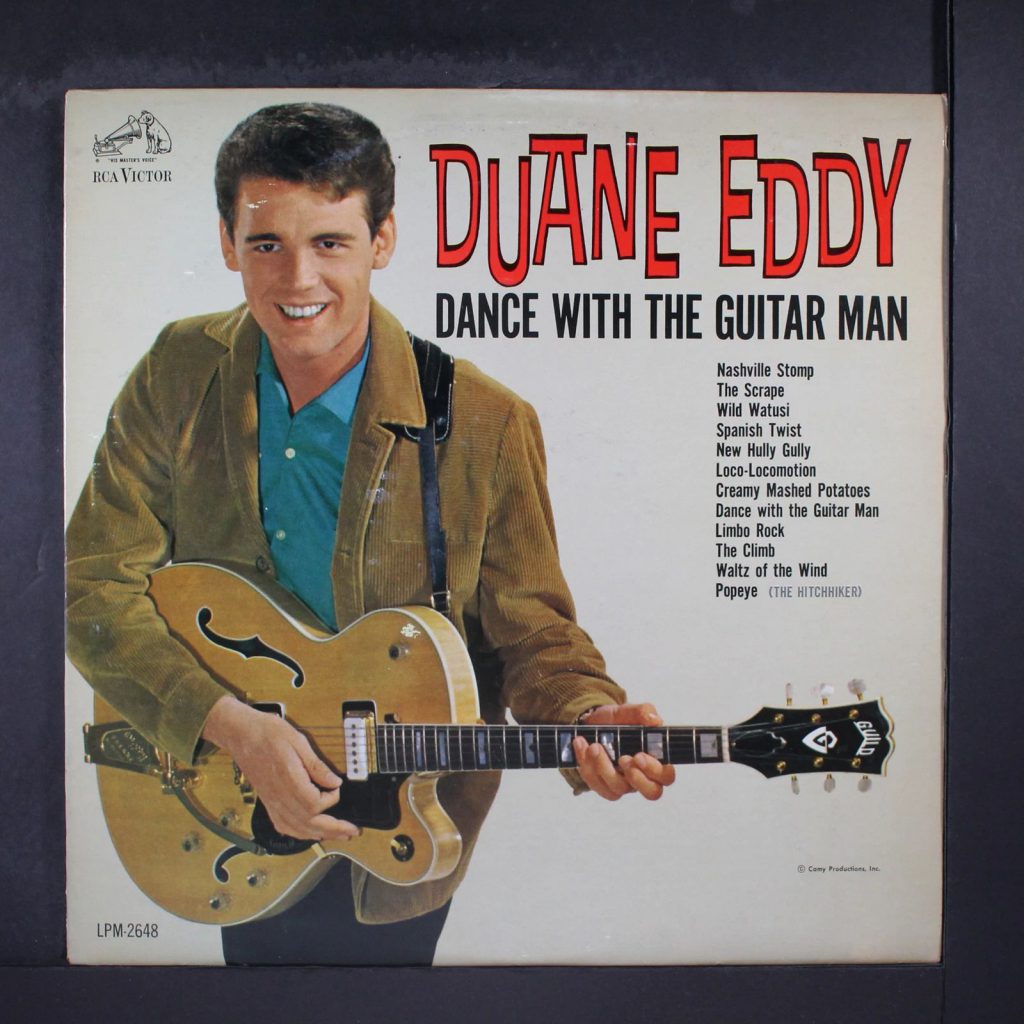 Eddy es un artista único en cuanto a su forma de concebir su música. Nunca intenta cantar en sus temas, puesto que no se considera un buen cantante. Tampoco cree que sea tan buen guitarrista, pero los radioyentes lo alaban. Graba más de 50 álbumes a lo largo de toda su vida y consigue colocar más de 15 temas en el “Top 40” durante los 5 primeros años de su carrera. Ha tocado con la mencionada “Gretsch 6120 Chet Atkins”, su bajo “Danelectro” de 6 cuerdas acústico utilizado en su disco de 1959 “The Twang ́s The Thang”, y luego una serie de modelos exclusivos. Sirva como dato curioso: es el primer guitarrista de rock & roll con guitarra “Signature”. En 1961, “Guild Guitars” lanza la “Duane Eddy DE-400” y la “DE-500 Deluxe”. Gretsch también muestra su respeto por Eddy al lanzar la “6120-DE” en 1997, y Gibson se une a la fiesta en 2004 al presentar la “Duane Eddy Signature Gibson”. Pocos han hecho más por animar a una nueva generación a aprender a tocar la guitarra, sobre todo porque la hace sonar sencilla. Nunca hace alarde de velocidad ni de destreza técnica, pero la influencia de su sonido se extiende a las bandas sonoras de Ennio Morricone (1928 – 2020) para los “spaghetti westerns” de Sergio Leone (1929 – 1989), a “Born to Run” de Bruce Springsteen (1949) y a guitarristas como George Harrison (1943 – 2001), Adrian Belew (1949), Bill Nelson (1948), Hank Marvin (1941), John Fogerty (1945) y Mark Knopfler (1949), entre muchos de sus admiradores.