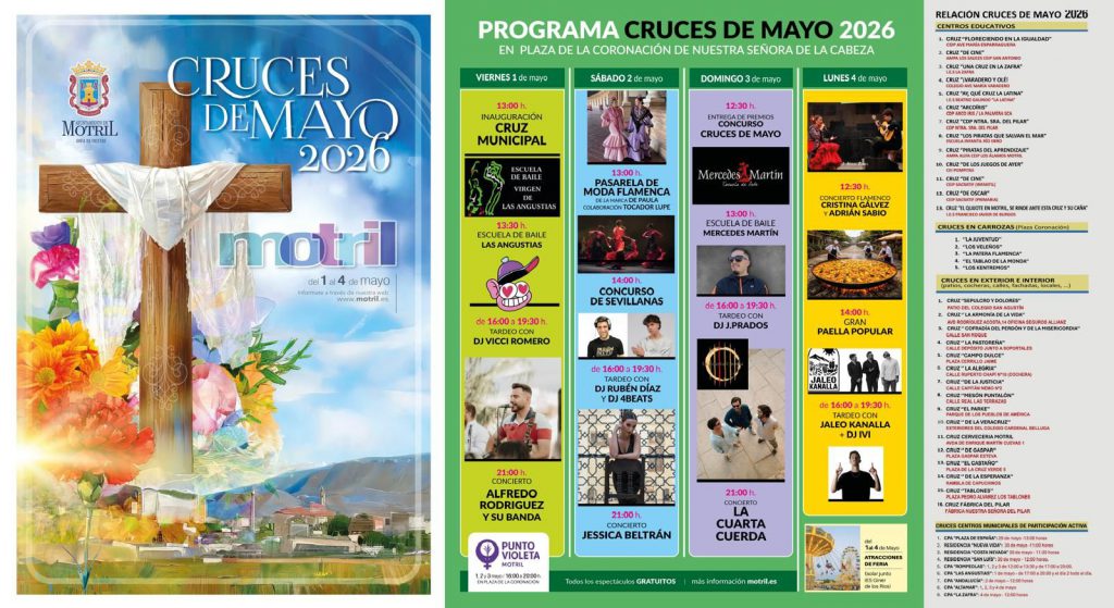 Motril vivirá uno de sus momentos más importantes del año, una celebración arraigada en la sociedad motrileña y que contribuye a mantener vivas las tradiciones culturales de Motril. Las Cruces de Mayo 2026 comenzarán el viernes 1 de mayo con la inauguración de la cruz municipal -Plaza de la Coronación- y traerán una programación completa llena de actividades, música y cruces organizadas por distintas entidades locales.
