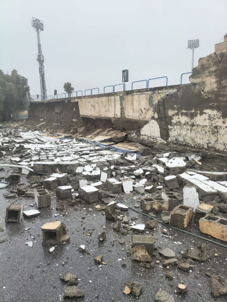 También hay que reseñar la caída del muro de la zona de preferente del estadio Escribano Castilla.