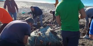 Voluntarios rescatan una red fantasma en el P.N. de Cabo de...