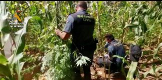 Sorprenden a tres individuos despalillando una planta de marihuana en una...