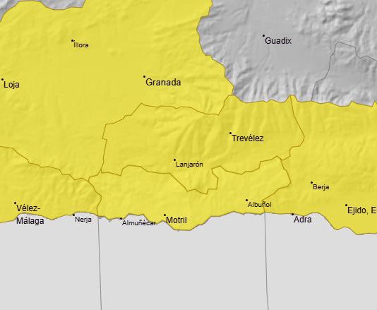 La Costa Tropical y Alpujarra en aviso amarillo por lluvias y posibilidad de tormentas