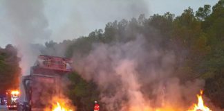 Arde un camión de recogida de reciclaje de papel cerca de...