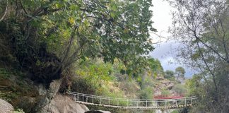 Un sendero fluvial con tres puentes colgantes, un vivero y un...
