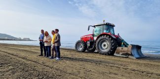 Trabajos de alisamiento y limpieza de la Playa de las Azucenas...