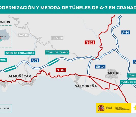 Transportes avanza con las obras de modernización de cinco túneles de la A-7 de Granada, con una inversión total de 12,95 millones