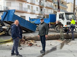 Salobreña lleva a cabo la tala de palmeras como medida de seguridad ante los fuertes vientos