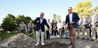 Colocación de la primera piedra de la Senda del Litoral entre...