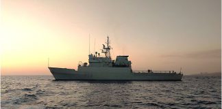 El patrullero de altura “Atalaya” realiza una operación de vigilancia y...