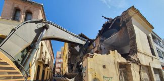 La demolición de una casa en ruinas del año 1937 en...