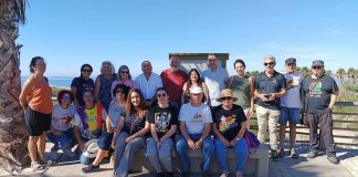 Una marquesina en la desembocadura del Guadalfeo señaliza el sendero de...