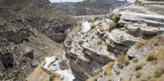 Una marquesina en la desembocadura del Guadalfeo señaliza el sendero de...